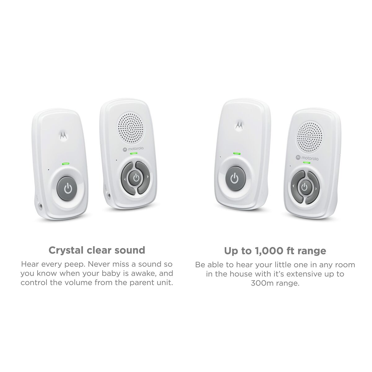The Motorola 501278604028 baby monitor is a device designed to provide safe and reliable monitoring of your baby with advanced technology and practical features aimed at facilitating parental supervision. This baby monitor stands out for its DECT wireless connectivity, ensuring clear and stable communication with up to 300 meters of range, allowing monitoring in different areas of the home without interference or signal loss. It features a built-in high-sensitivity microphone that captures sounds clearly, enabling constant listening to the baby’s movements and vocalizations. The parent unit operates both with mains power and AAA batteries (not included), offering flexibility and portability according to usage needs. Additionally, it includes volume control functions to adjust audio intensity and specific alerts that notify when the baby is out of range or when the battery is low, ensuring continuous monitoring without lapses. Its practical and modern design is available in white and black, manufactured in Spain under recognized quality standards. The device also includes a simple on/off switch for easy daily use. Overall, the Motorola 501278604028 offers an efficient and secure solution for parental supervision, combining advanced wireless technology, ease of use, and essential functionality for family peace of mind.