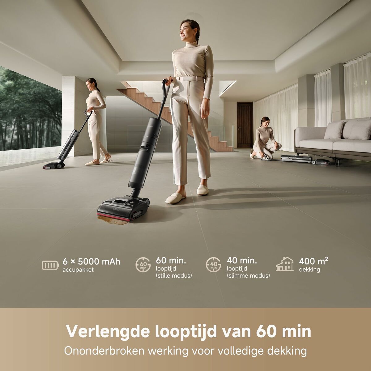 The DREAME H15 Pro Stick Vacuum Cleaner from Dreame is an advanced home cleaning solution that combines cutting-edge technology with a functional design in black. This model features an innovative DescendReach AI robotic arm that enables efficient cleaning by adapting to different surfaces and corners, maximizing coverage. Its suction power reaches 21 kPa, ensuring deep dust and dirt extraction, complemented by an anti-tangle system that prevents hair and fibers from accumulating on the head. The dustbin capacity is 800 ml, enough to extend cleaning sessions without frequent interruptions, while its removable filter allows easy maintenance and prolongs the vacuum’s lifespan. It includes a built-in screen that facilitates monitoring battery life and status during use. The vacuum operates with a rechargeable lithium battery offering approximately 1 hour of autonomy, sufficient for most daily household tasks. Additionally, it features an attractive cleaning system with an immersive brush at 100 °C, a premium function that enhances surface disinfection. Its rectangular design allows ergonomic handling and access to hard-to-reach places, making it a practical and versatile tool for demanding homes. Overall, the DREAME H15 Pro represents an advanced technological option for those seeking to combine power, autonomy, and smart cleaning in a compact, manageable stick vacuum.