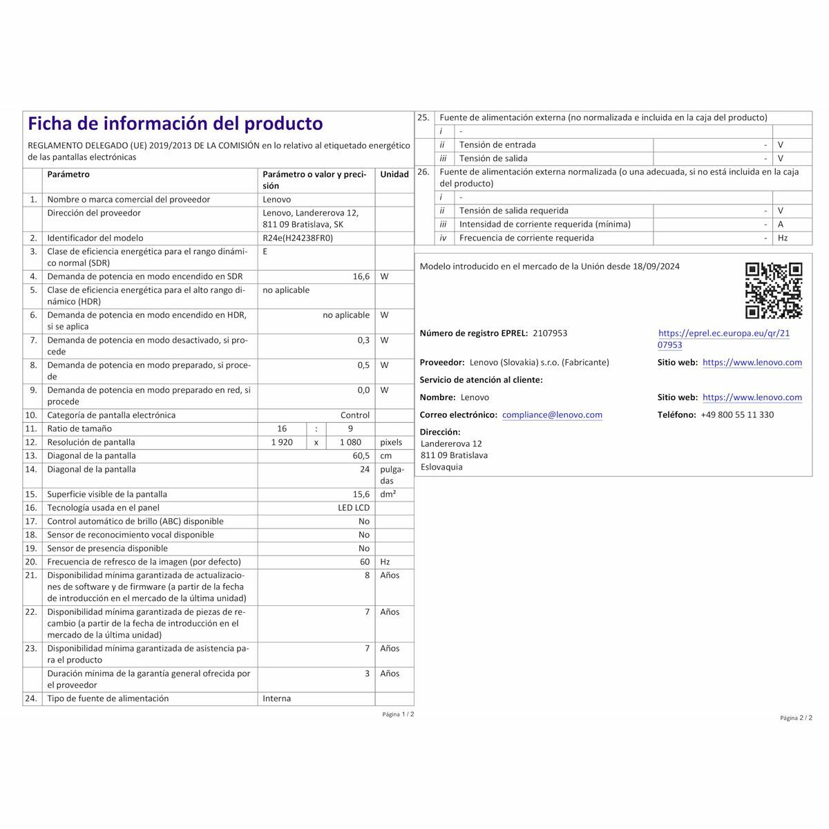 The Lenovo monitor model 67CCGAC4EU, part of the Legion R24e range, is designed to deliver sharp and efficient visual performance for workspaces or entertainment. It features a 23.8-inch screen that offers a balanced size for content viewing without sacrificing desk space. Its panel is based on LED IPS technology, ensuring accurate colors and wide viewing angles, ideal for tasks requiring color fidelity such as graphic design or video editing. Additionally, it includes WLED backlighting, which contributes to lower energy consumption and more uniform brightness across the screen surface. Although other technologies like TN are mentioned, the main focus of this model is the IPS panel, which enhances the visual experience compared to other technologies with more limited color and angle performance. Its matte black design helps it blend into professional and gaming environments, avoiding annoying reflections. The adjustable and swivel monitor allows screen positioning to ensure ergonomics during long usage sessions, promoting comfort and productivity. This product is especially suitable for users seeking a balance between visual quality and practical features in a medium-sized monitor, with advanced technology to deliver clear and consistent images. In short, the Lenovo Legion R24e represents an efficient and versatile solution within the monitor segment designed for work and digital leisure.