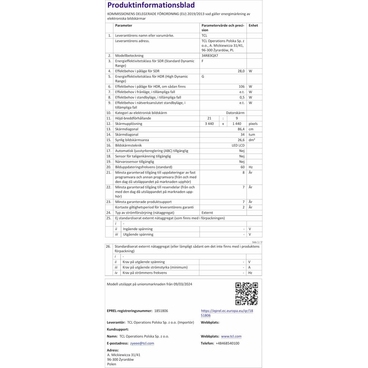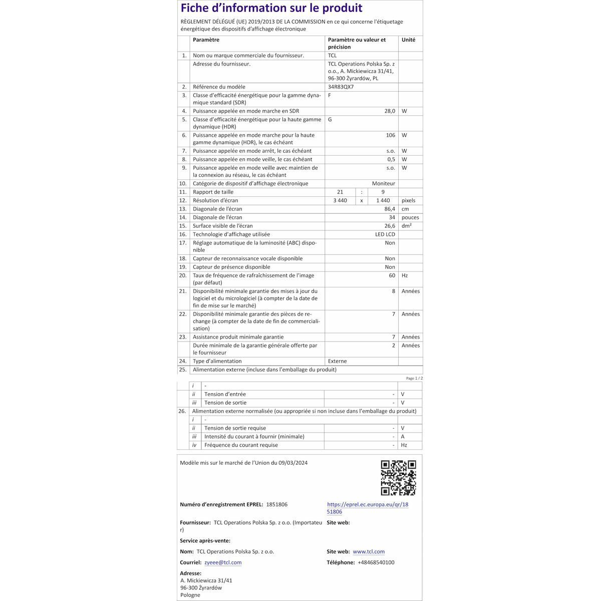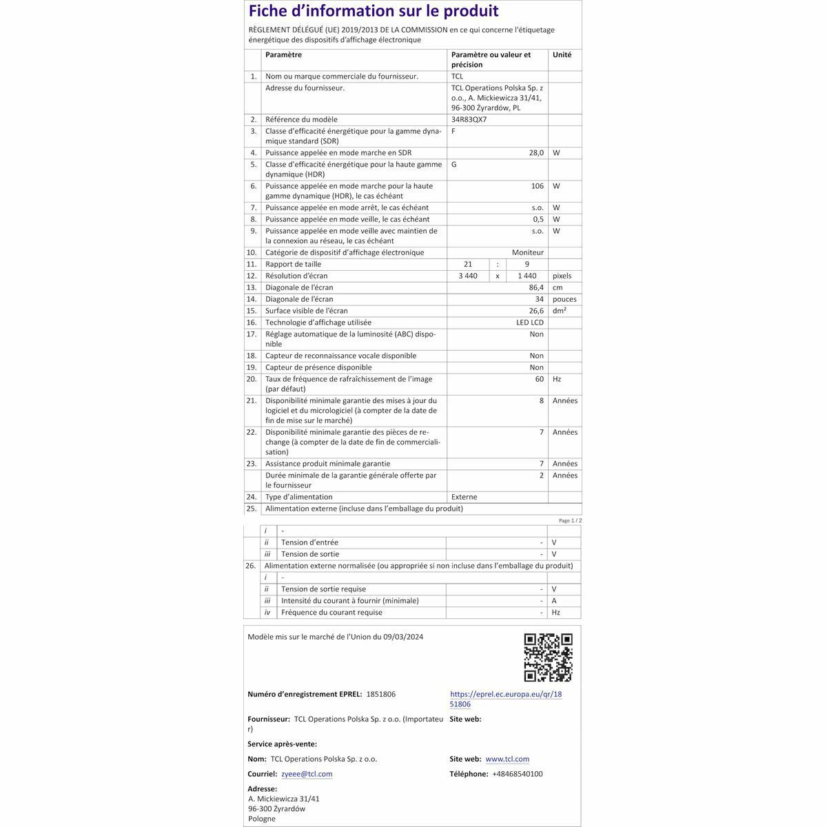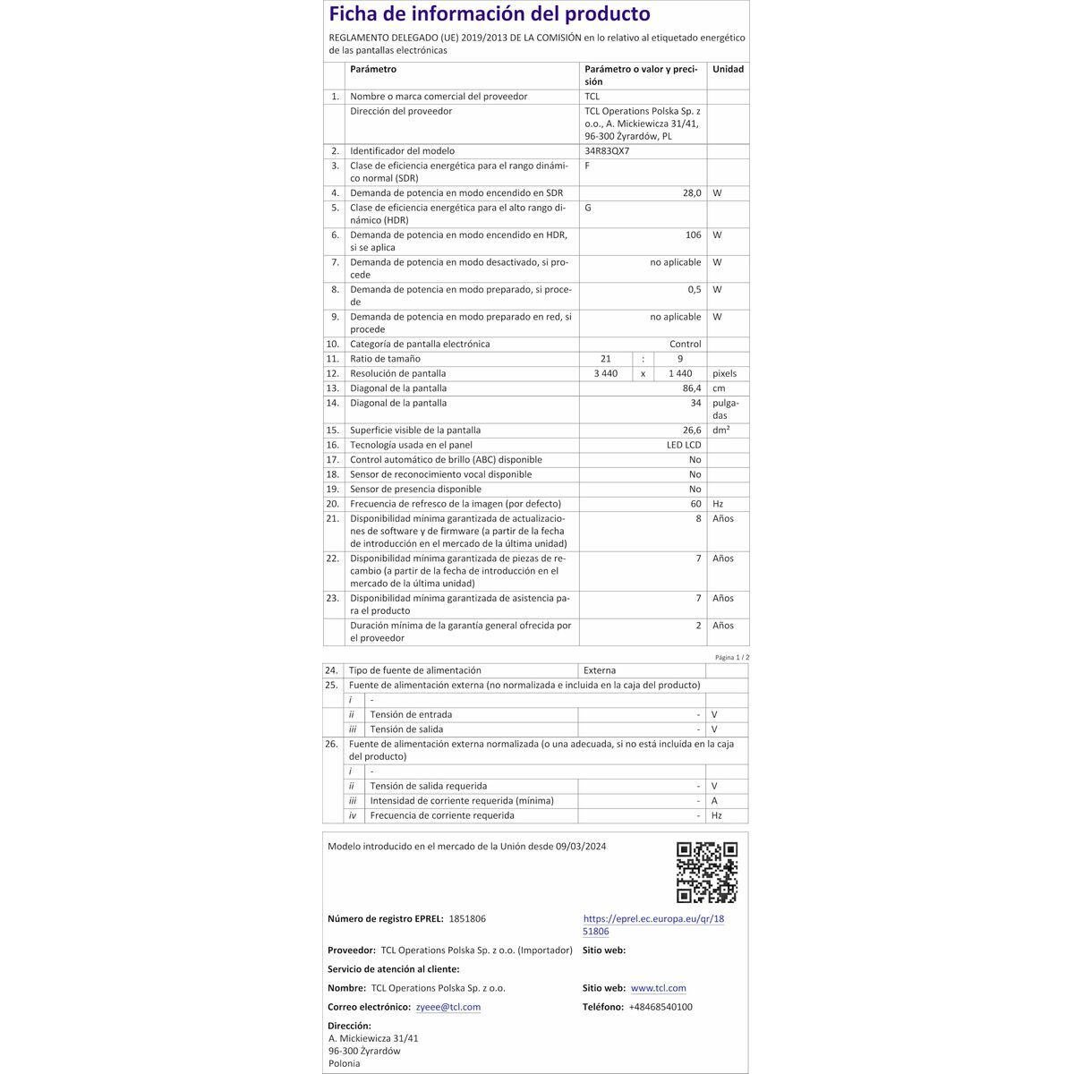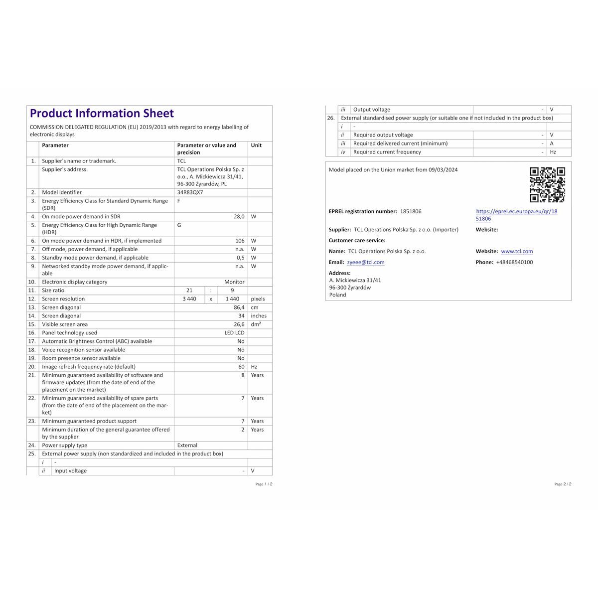 Be the first to review “Monitor TCL 34R83Q LCD 37″”